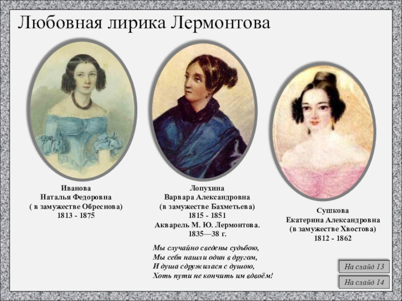 Любовная лирика Лермонтова
