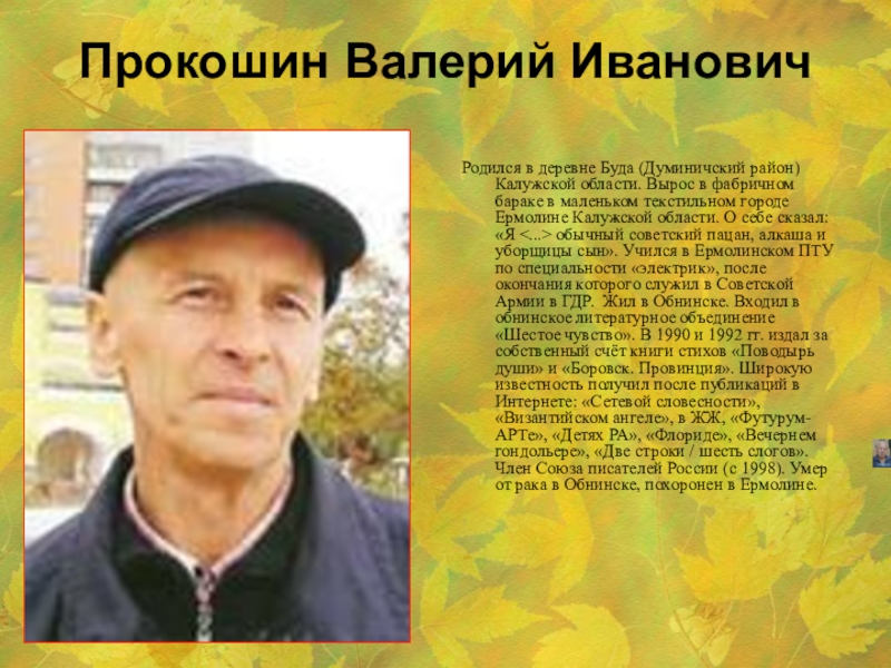(1936 – 2009) родился в селе Ивановское Калужской