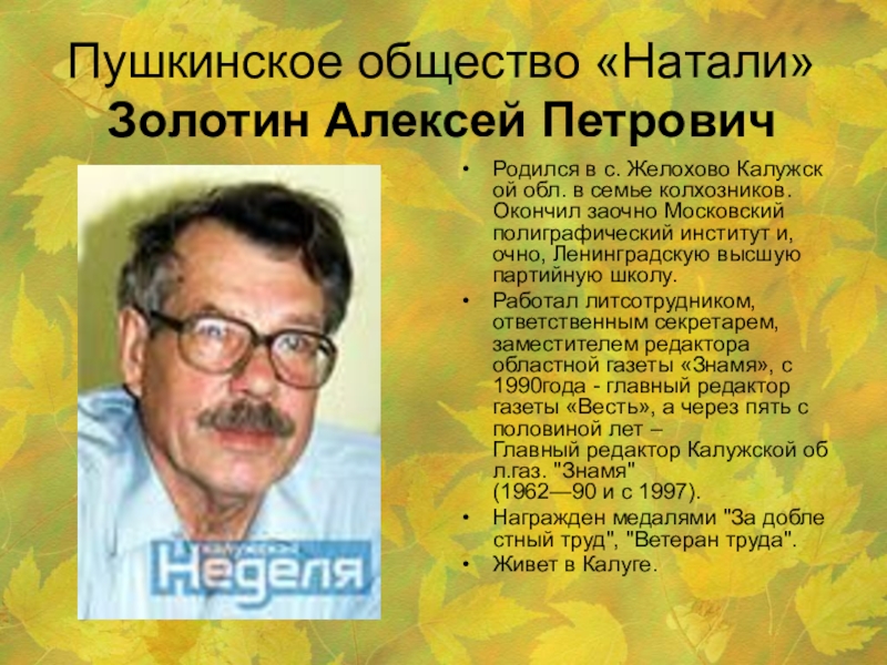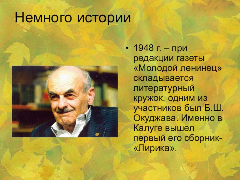 кружок, одним из участников был Б.Ш. Окуджава. Именно в Калуге вышел первый его сборник- «Лирика».