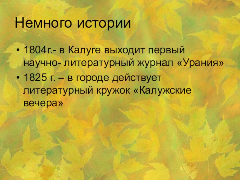1804г.- в Калуге выходит первый научно- литературный журнал «Урания»
