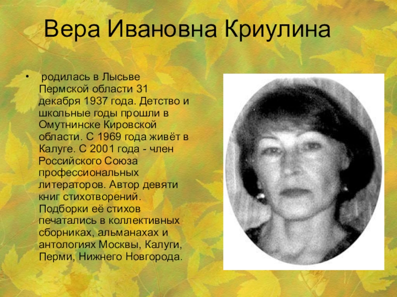 Слайд 14 Вера Ивановна Криулина