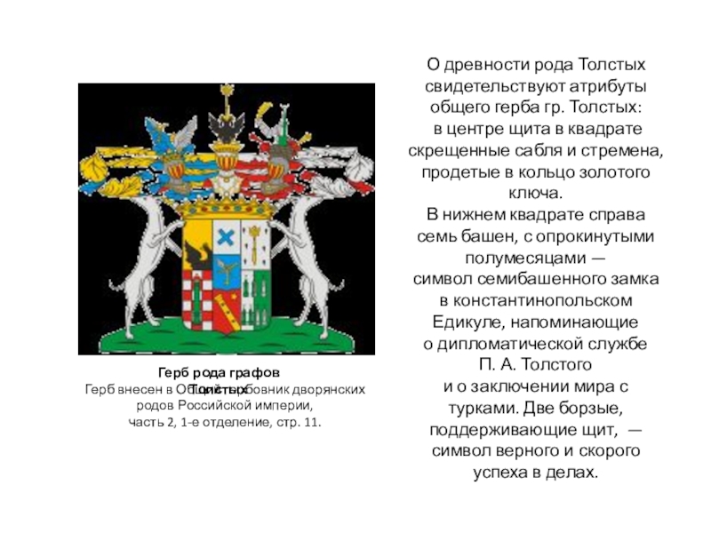 Герб внесен в Общий гербовник дворянских родов Российской империи,