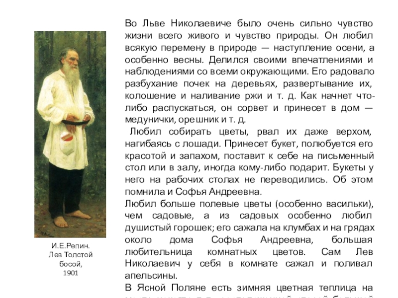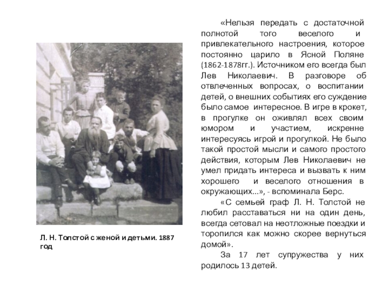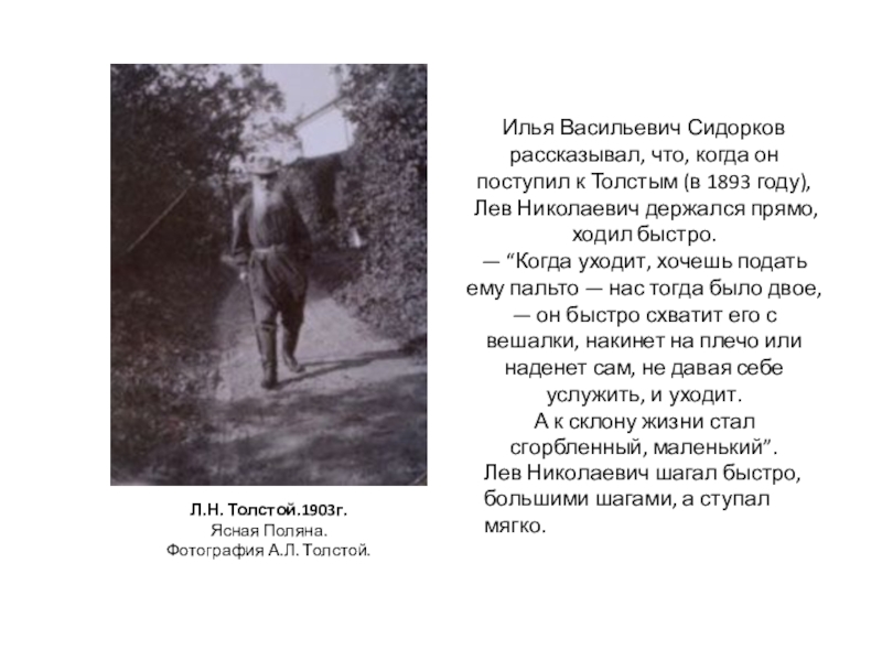 Илья Васильевич Сидорков рассказывал, что, когда он поступил к Толстым (в 1893 году),