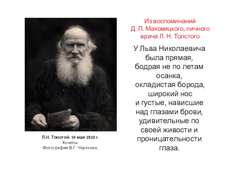 Д. П. Маковицкого, личного врача Л. Н. Толстого