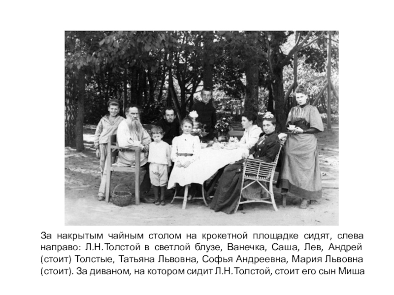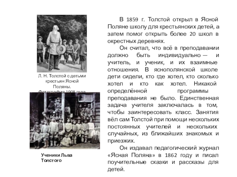 Л. Н. Толстой с детьми крестьян Ясной Поляны.