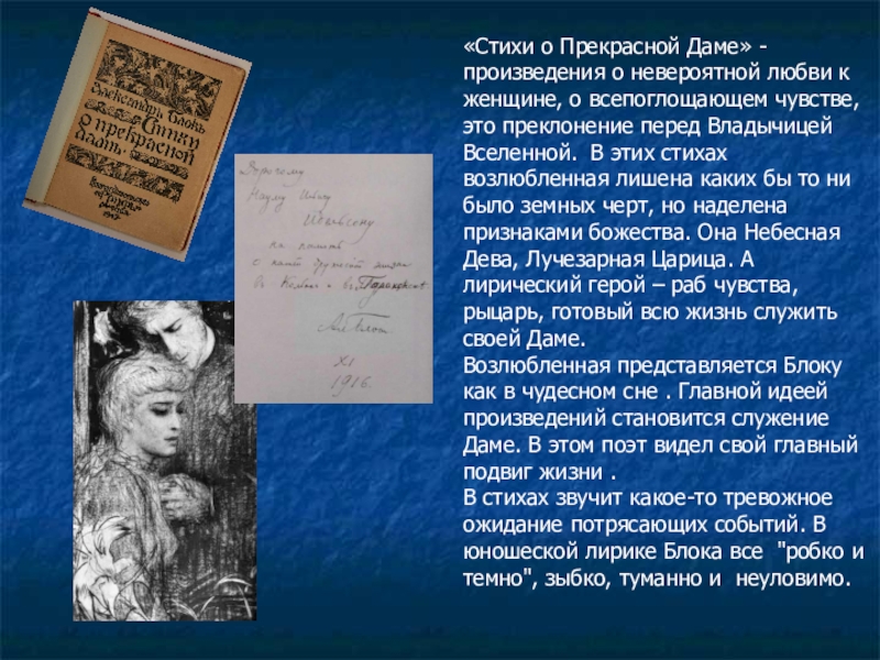 Слайд 12«Стихи о Прекрасной Даме» - произведения о невероятной любви к женщине,