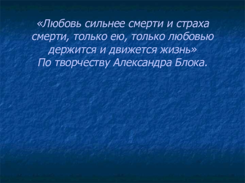 Слайд 1«Любовь сильнее смерти и страха смерти, только ею, только любовью держится