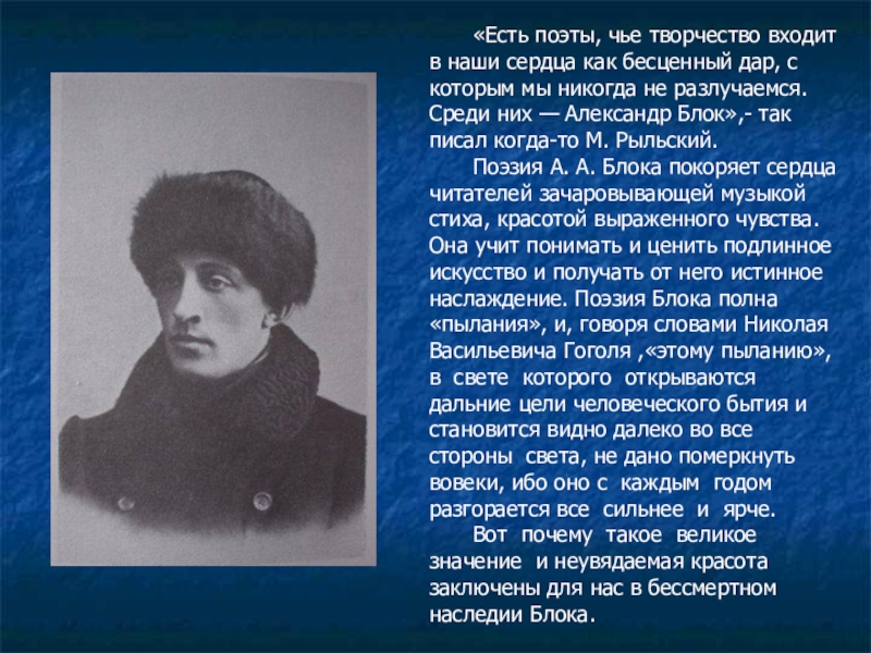 с которым мы никогда не разлучаемся. Среди них — Александр Блок»,- так писал когда-то М. Рыльский.