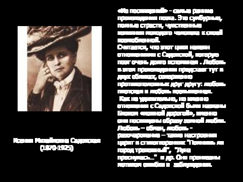 Слайд 7«Из посвящений» - самые ранние произведения поэта. Это сумбурные, полные страсти,