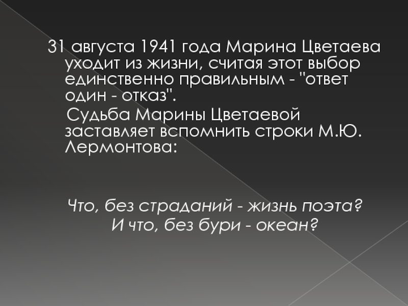 Слайд 1531 августа 1941 года Марина Цветаева уходит из жизни, считая этот