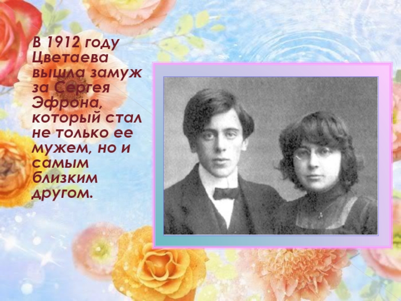 Слайд 5 В 1912 году Цветаева вышла замуж за Сергея Эфрона,