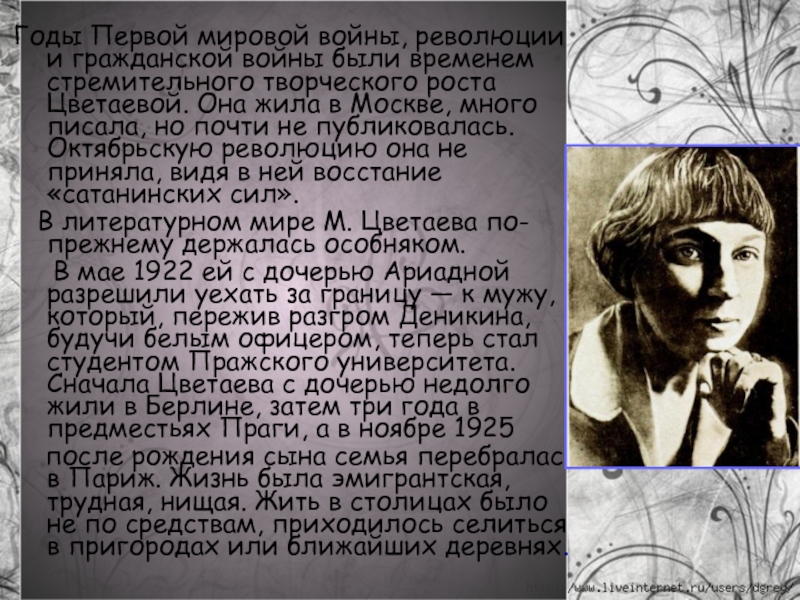 Слайд 8 Творческая энергия Цветаевой, невзирая ни на что, не