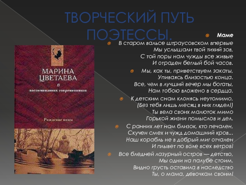 Слайд 9ТВОРЧЕСКИЙ ПУТЬ ПОЭТЕССЫ.