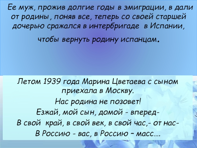 Летом 1939 года Марина Цветаева с сыном приехала в Москву.