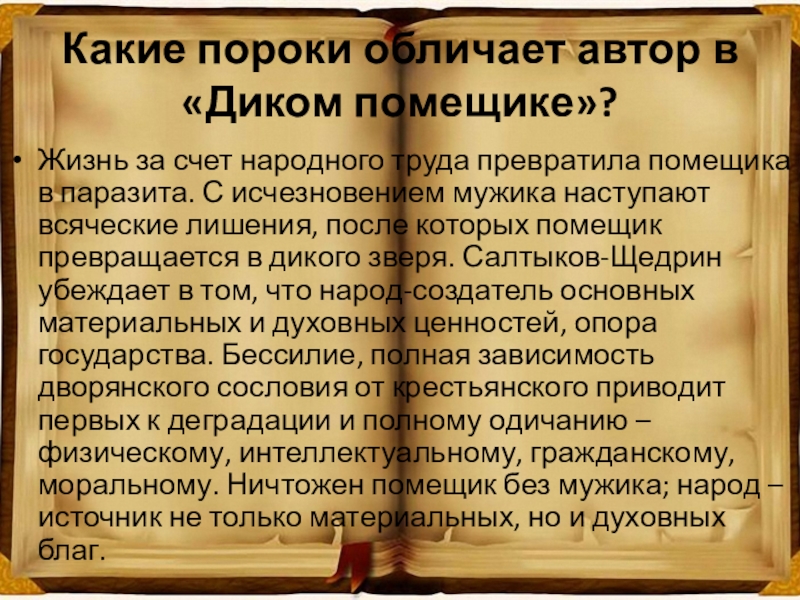 Слайд 13Какие пороки обличает автор в «Диком помещике»?