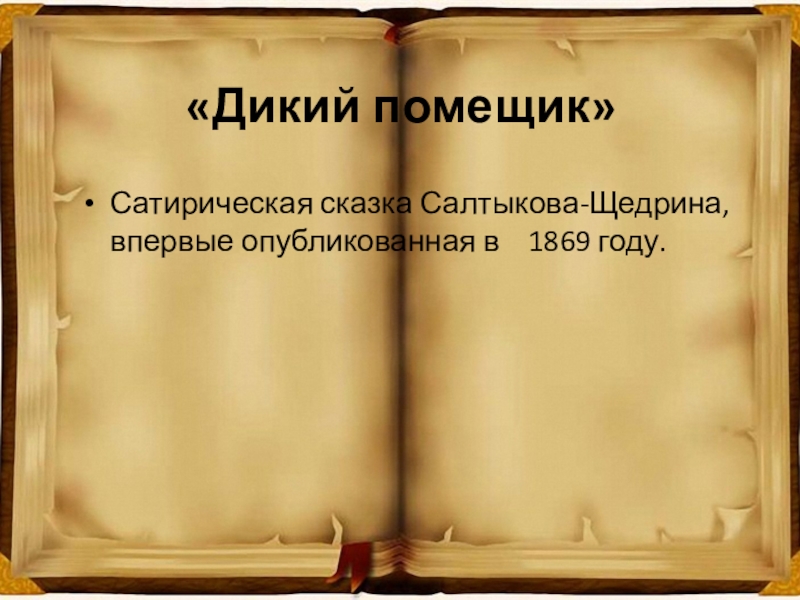 Слайд 1Своеобразие сказки М.Е. Салтыкова-Щедрина «Дикий помещик»
