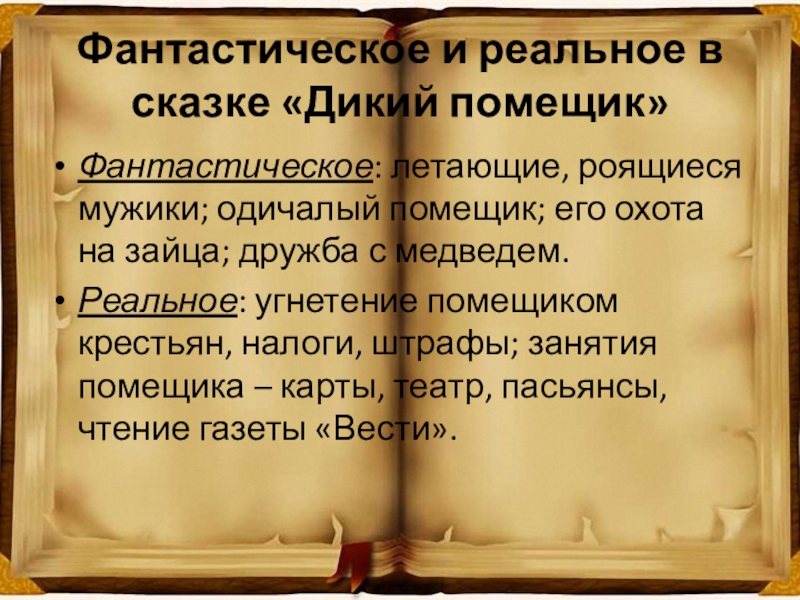 Слайд 11Фантастическое и реальное в сказке «Дикий помещик»