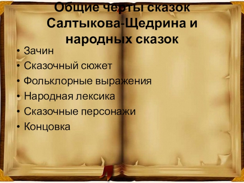Слайд 3Общие черты сказок Салтыкова-Щедрина и народных сказок