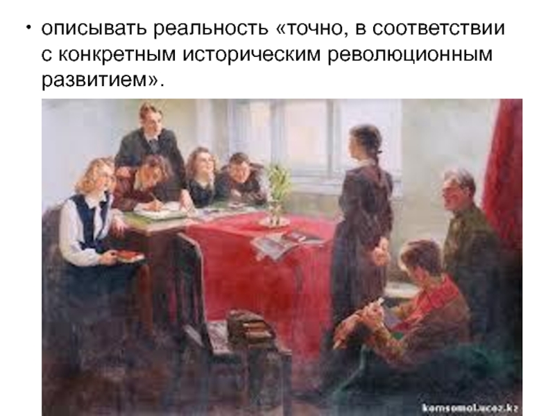 описывать реальность «точно, в соответствии с конкретным историческим революционным развитием».