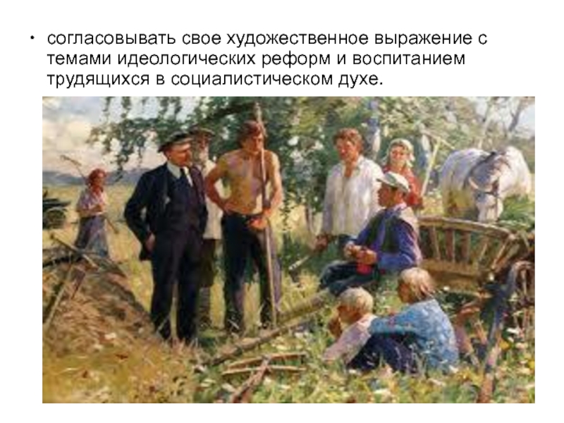 согласовывать свое художественное выражение с темами идеологических реформ и воспитанием трудящихся