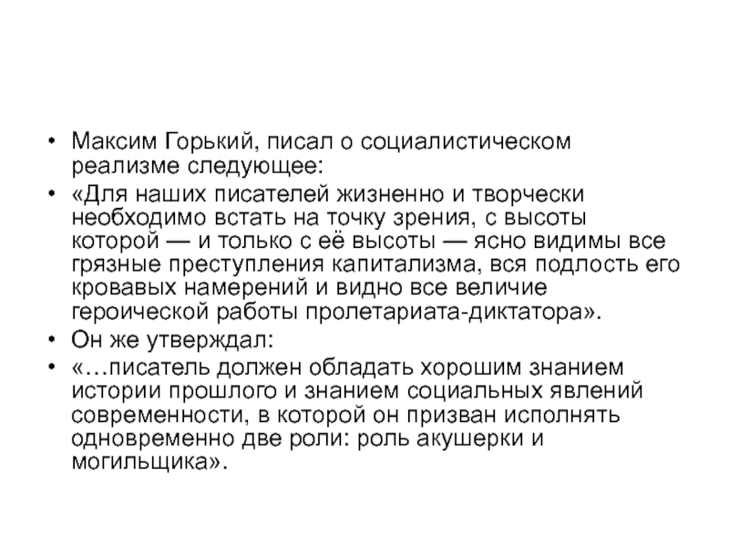 Максим Горький, писал о социалистическом реализме следующее: