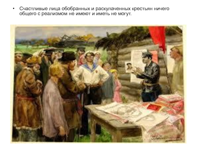Счастливые лица обобранных и раскулаченных крестьян ничего общего с реализмом не