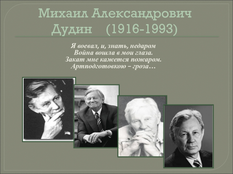Слайд 4Михаил Александрович Дудин (1916-1993)