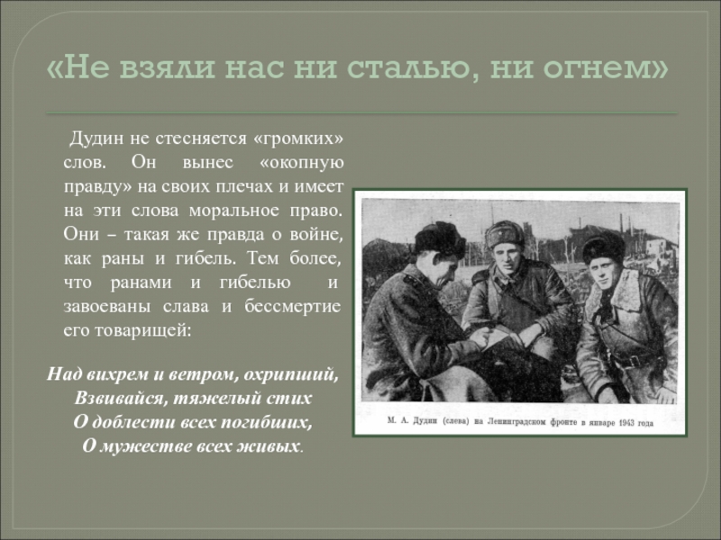 Слайд 8«Не взяли нас ни сталью, ни огнем»