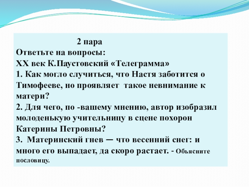 1. Как могло случиться, что Настя заботится о Тимофееве, но проявляет такое невнимание к матери?