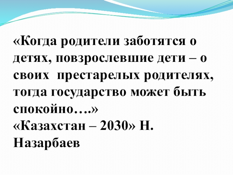 Слайд 3«Когда родители заботятся о детях, повзрослевшие дети – о своих престарелых