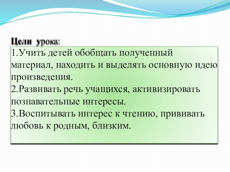 1.Учить детей обобщать полученный материал, находить и выделять основную идею