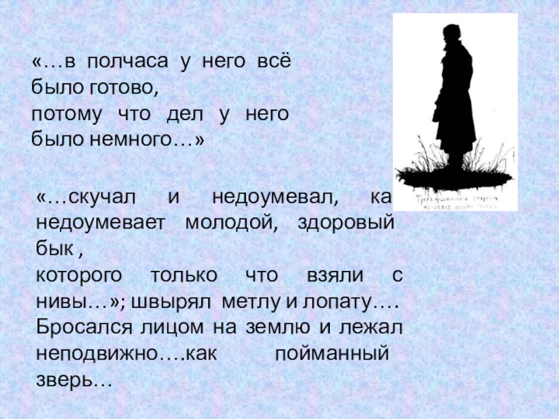 Бросался лицом на землю и лежал неподвижно….как пойманный зверь…