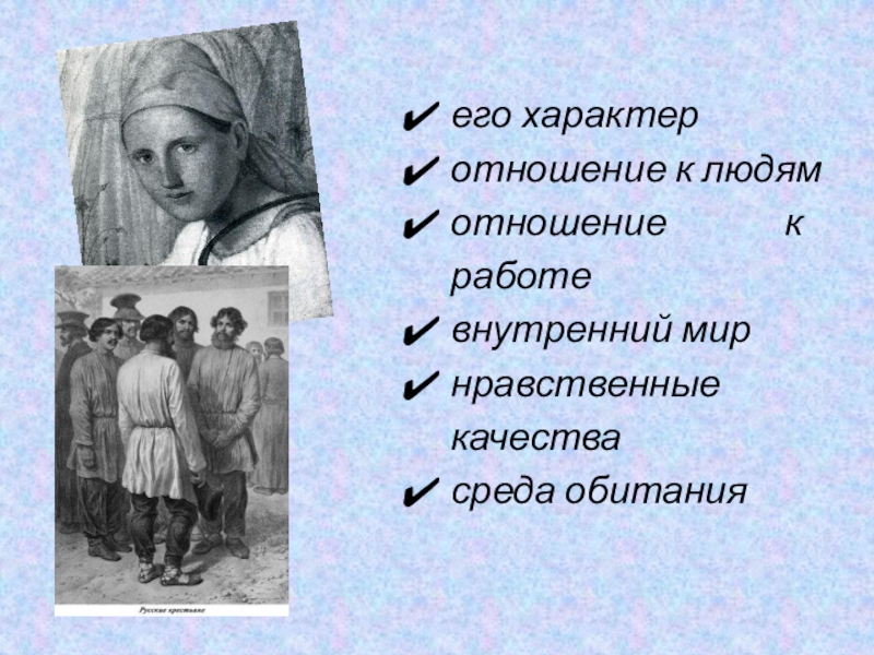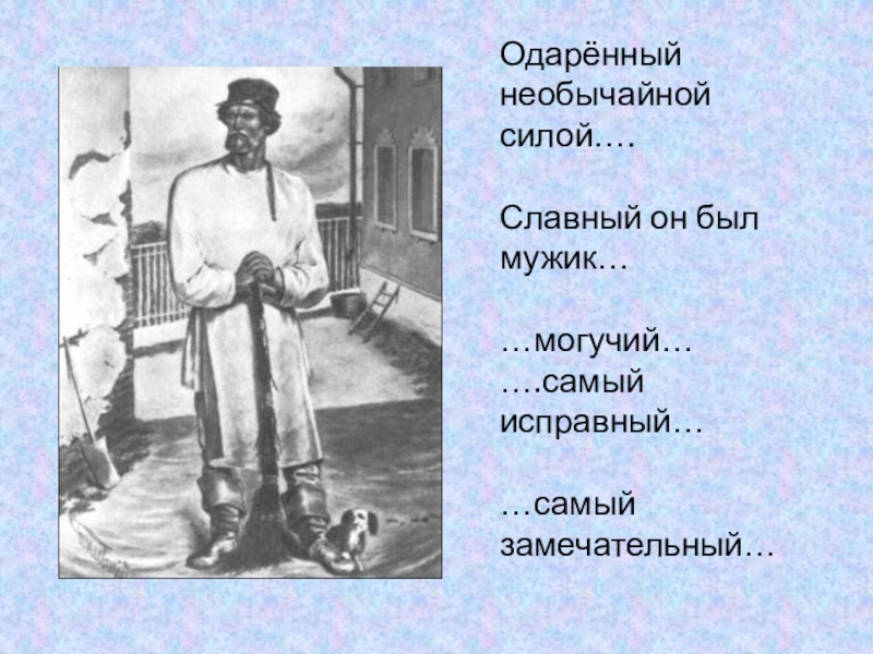 которого только что взяли с нивы…»; швырял метлу и лопату….