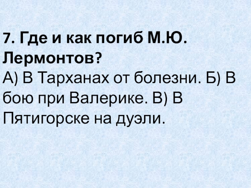 Теперь он известный поэт, автор таких произведений, как «Смерть поэта», «Бородино», «Родина», романа «Герой нашего времени».
