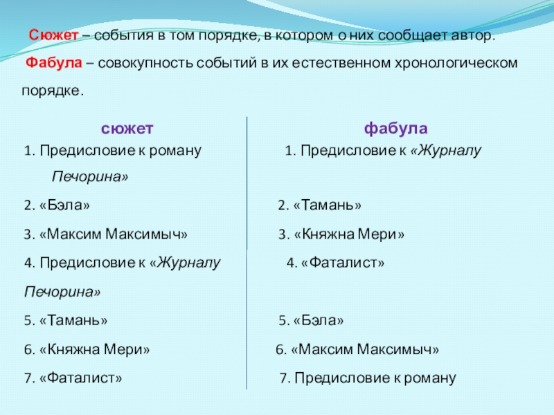 2. «Бэла» 2. «Тамань»