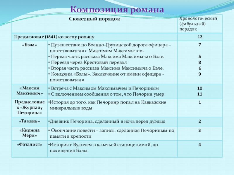 6. «Княжна Мери» 6. «Максим Максимыч»