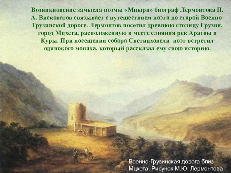 Военно-Грузинская дорога близ Мцхета. Рисунок М.Ю. Лермонтова