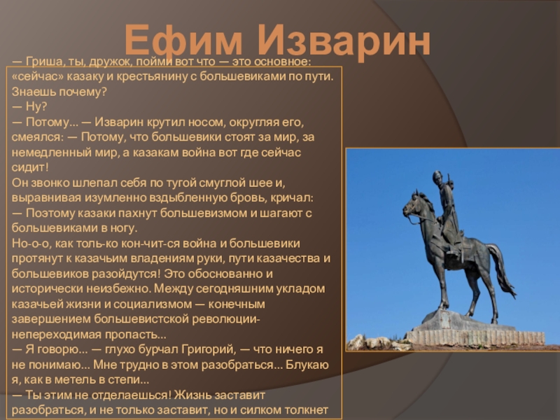 бурлившего ненавистью, враждебного и непонятного мира. Там, позади, все было путано, противоречиво. Трудно нащупывалась верная тропа; как в топкой гати, забилась под ногами почва, тропа дробилась, и не было уверенности — по той ли, по которой надо, идет. Тянуло к большевикам — шел, других вел за собой, а потом брало раздумье, холодел сердцем. «Неужто прав Изварин? К кому же прислониться?» Об этом невнятно думал Григорий, привалясь к задку кошелки. Но, когда представлял себе, как будет к весне готовить бороны, арбы, плесть из краснотала ясли, а когда разденется и обсохнет земля, — выедет в степь: держась наскучавшимися по работе руками за чапиги; пойдет за плугом, ощущая его живое биение и толчки; представляя себе, как будет вдыхать сладкий дух молодой травы и поднятого лемехами чернозема, еще не утратившего пресного аромата снеговой сырости, — теплело на душе. Хотелось убирать скотину, метать сено, дышать увядшим запахом донника, пырея, пряным душком навоза. Мира и тишины хотелось, — поэтому-то застенчивую радость и берег в суровых глазах Григорий, глядя вокруг…Все напоминало ему полузабытую прежнюю жизнь: и запах овчин от тулупа, и домашний вид нечищеных лошадей, и какой-нибудь петух в слободе, горланящий с погребицы. Сладка и густа, как хмелины, казалась ему в это время жизнь тут, в глушине.