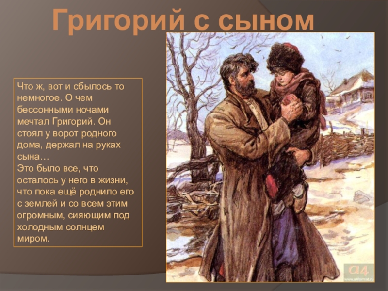 ... Хутор, знакомые квадраты кварталов, церковь, площадь... Кровь кинулась Григорию в голову, когда напал глазами на свой курень. Воспоминания наводнили его. С база поднятый колодезный журавль словно кликал, вытянув вверх серую вербовую руку.