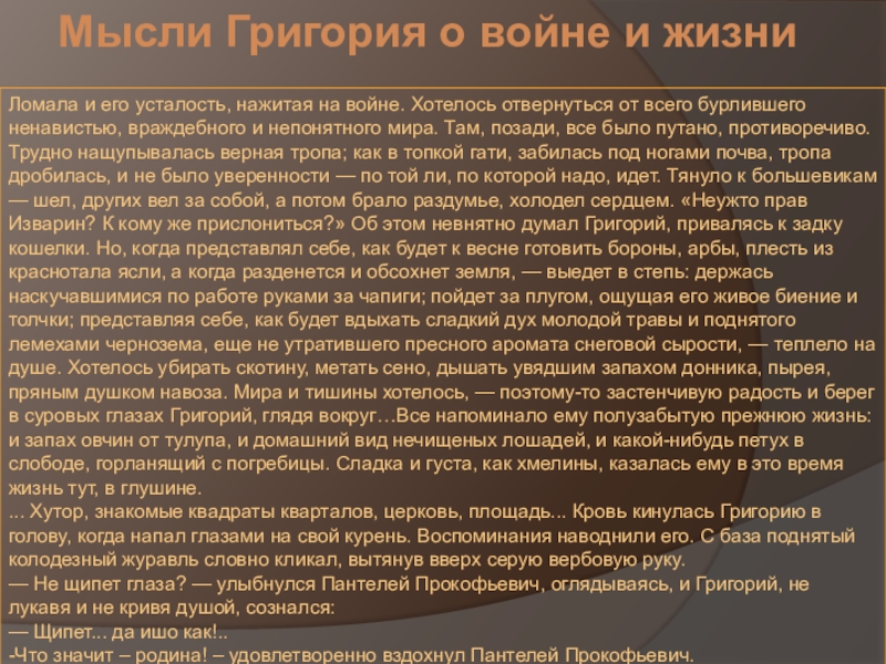 — Не щипет глаза? — улыбнулся Пантелей Прокофьевич, оглядываясь, и Григорий, не лукавя и не кривя душой, сознался: