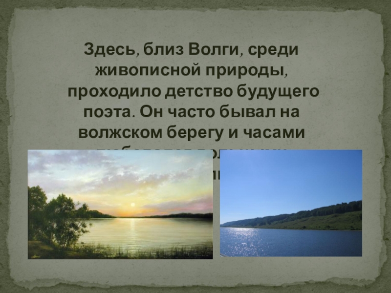 Слайд 6 Здесь, близ Волги, среди живописной природы, проходило детство будущего