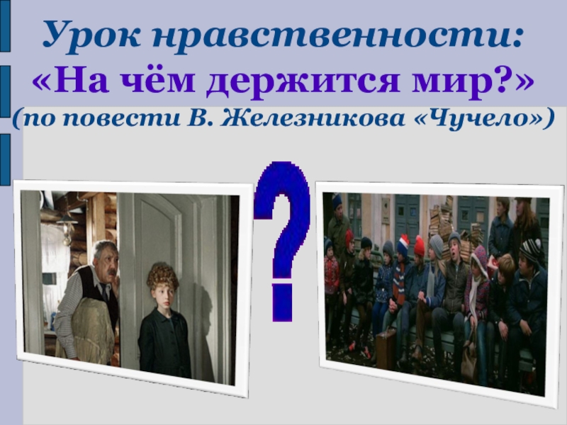 Слайд 2Урок нравственности: «На чём держится мир?» (по повести В. Железникова «Чучело»)