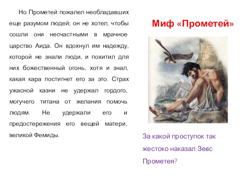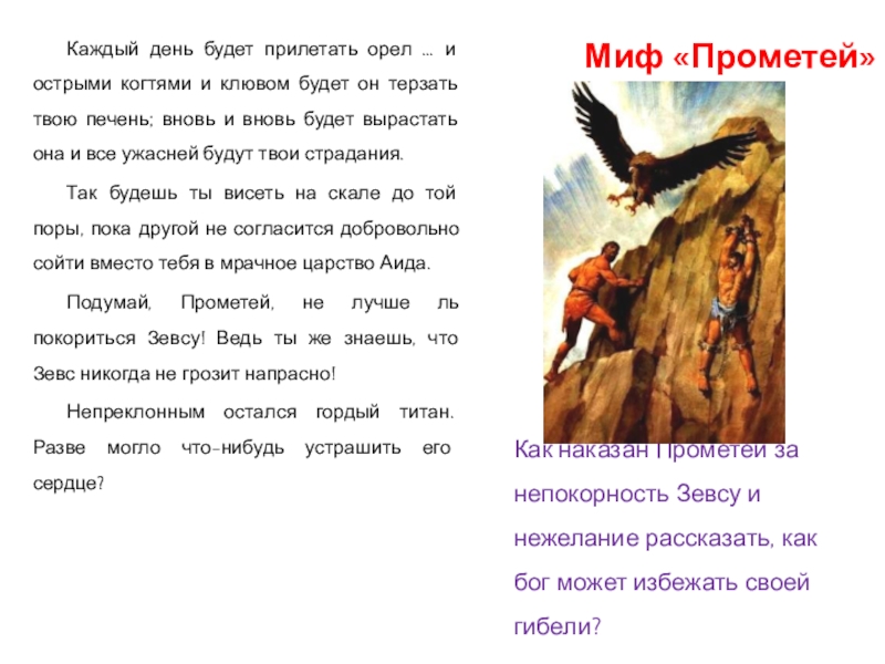 Как наказан Прометей за непокорность Зевсу и нежелание рассказать, как бог может избежать своей гибели?