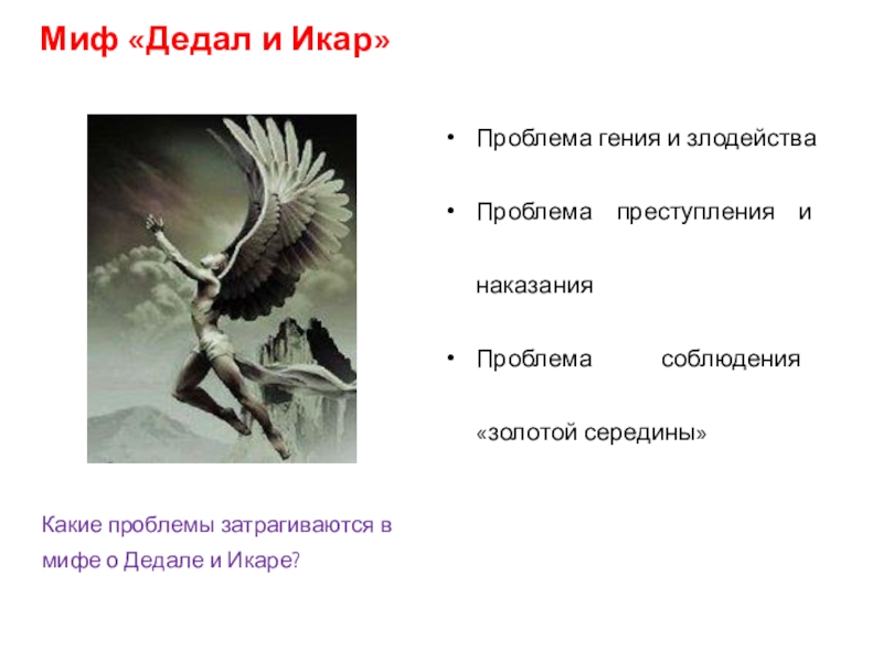 Какие проблемы затрагиваются в мифе о Дедале и Икаре?