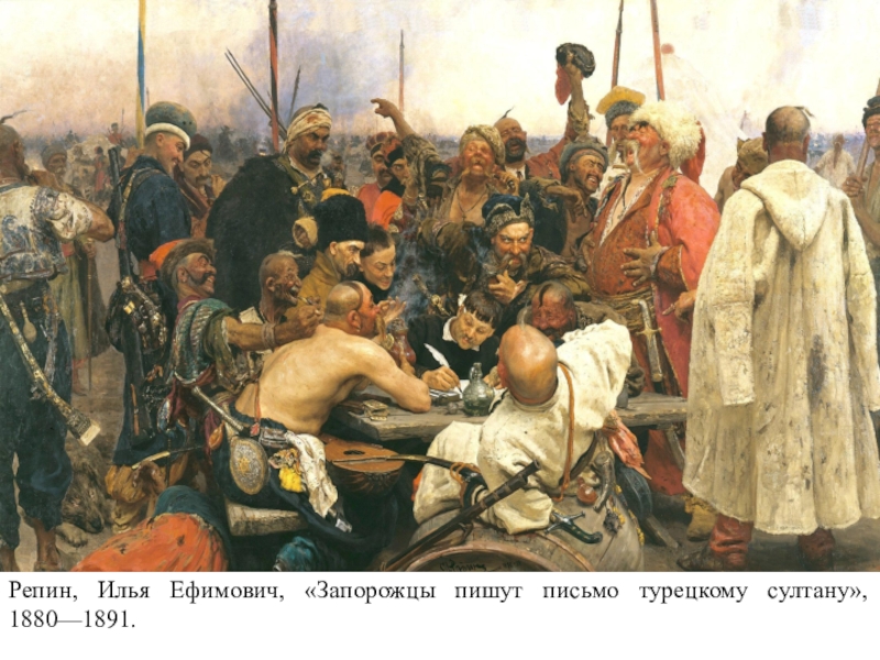 Репин, Илья Ефимович, «Запорожцы пишут письмо турецкому султану», 1880—1891.
