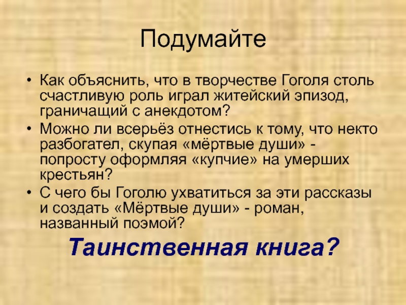 С чего бы Гоголю ухватиться за эти рассказы и создать «Мёртвые души» - роман, названный поэмой?