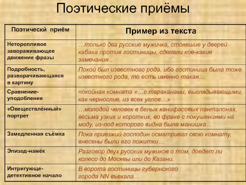 Поэтические приёмы Н.В.Гоголя (таблица).