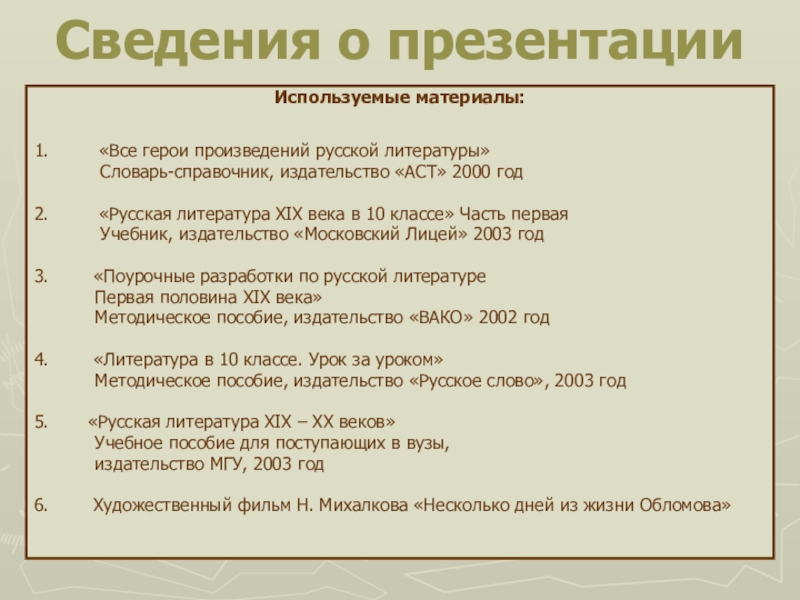 6. Художественный фильм Н. Михалкова «Несколько дней из жизни Обломова»