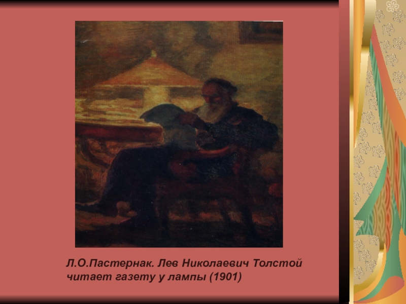 Слайд 7Л.О.Пастернак. Лев Николаевич Толстой читает газету у лампы (1901)