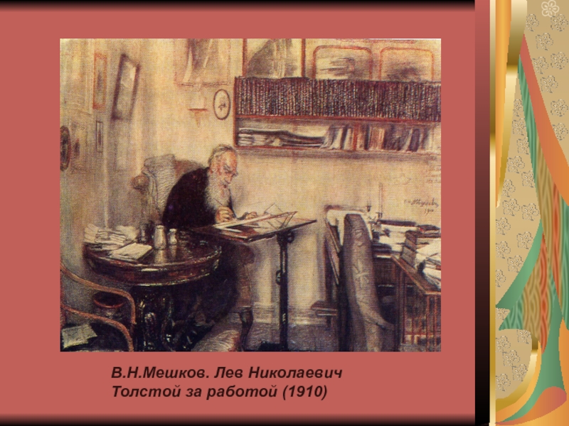 Слайд 9В.Н.Мешков. Лев Николаевич Толстой за работой (1910)